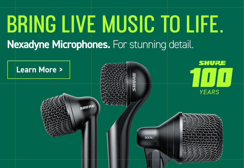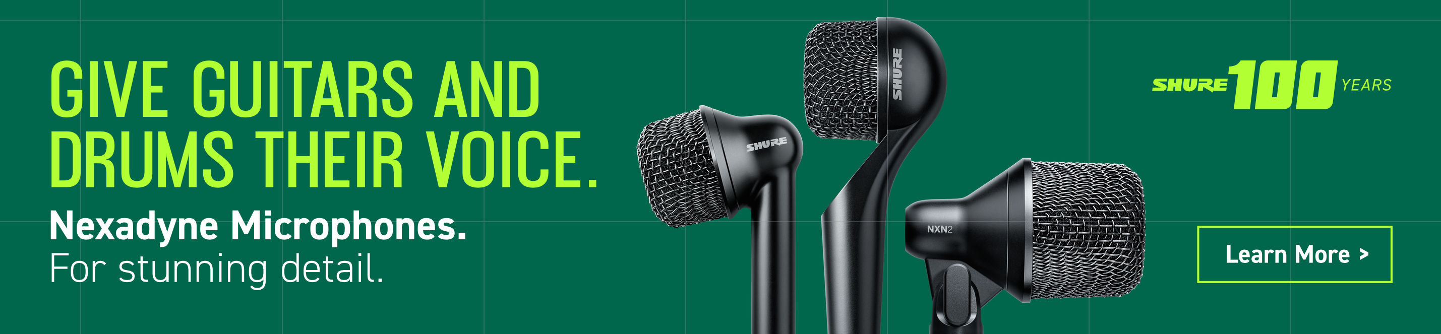 Nexadyne instrument microphones feature patented Shure Revonic™ dual-engine transducer technology, with two precisely calibrated transducers working together to achieve optimal performance.